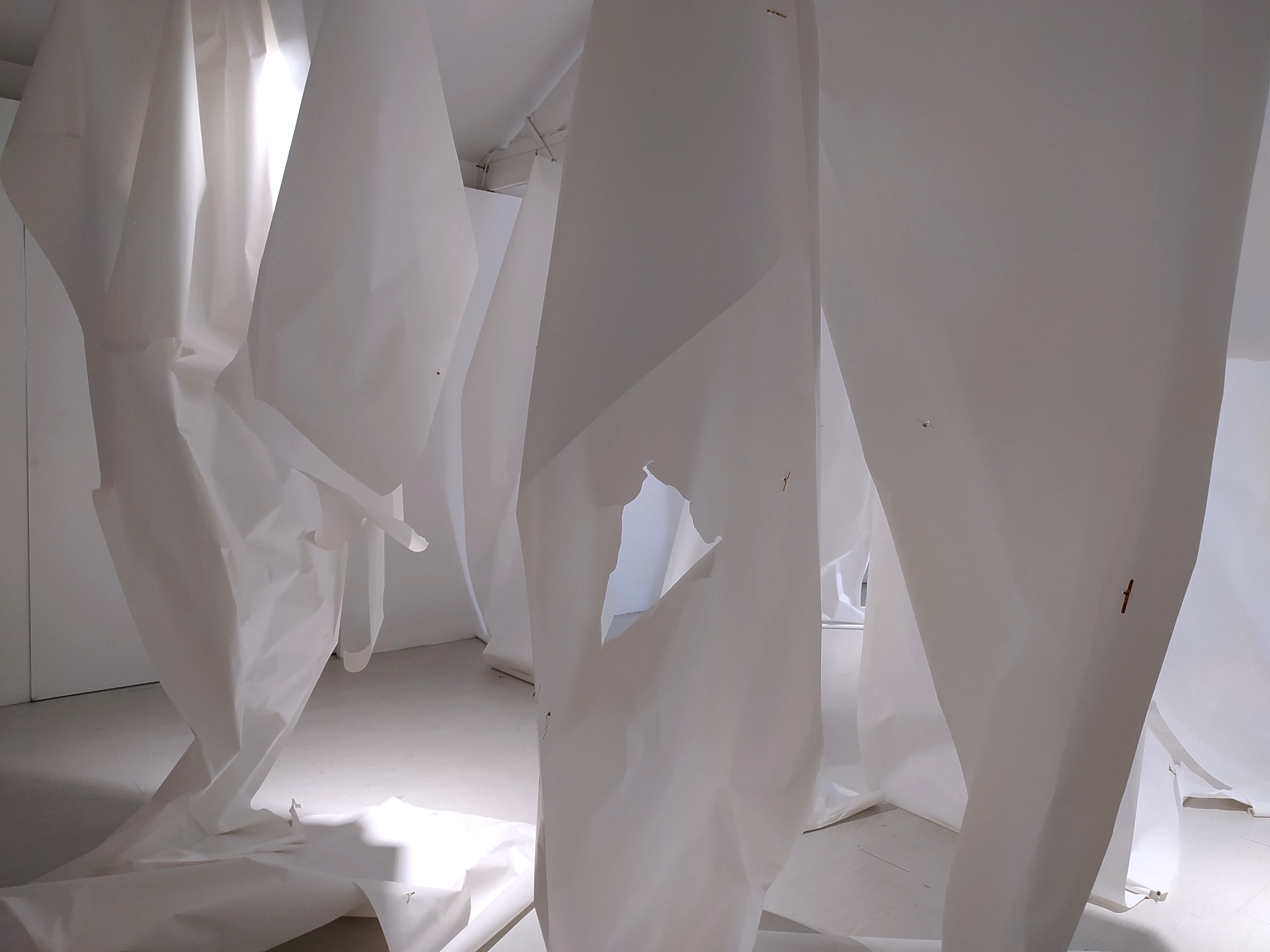2. The “room” is divided into 5 spaces. These represent stages or moments. These spaces are separated by wallpaper. They can be seen as obstacles — limits that might be blocking your path, or the path of others besides you.
